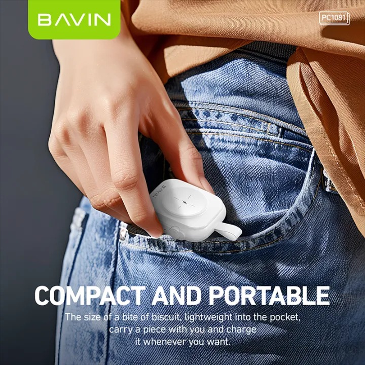 با طراحی باریک و سبک، پاوربانک اپل واچ Bavin PC1081 به راحتی در جیب، کیف یا حتی به همراه بند مخصوص (که در بسته‌بندی موجود است) حمل می‌شود. هر کجا که بروید، انرژی همراه شماست!
