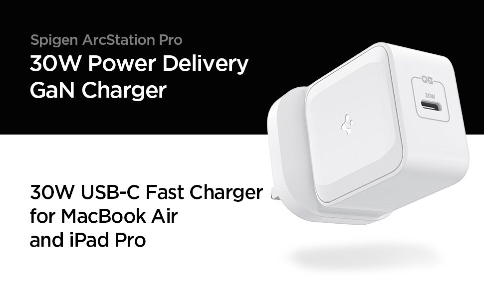 شارژر اسپیگن ArcStation™ Pro GaN با خروجی ۳۰ وات و پشتیبانی از Power Delivery 3.0، امکان شارژ سریع دستگاههای مختلف از جمله گوشیهای هوشمند، تبلتها و لپتاپها را فراهم میکند. این شارژر میتواند گوشیهای آیفون سری ۱۲ را در مدت ۳۰ دقیقه تا ۵۰ درصد شارژ کند.