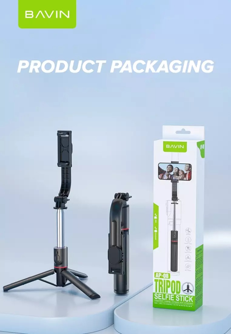 مهم‌ترین ویژگی این محصول، اتصال بلوتوثی با برد 10 متری است که امکان کنترل از راه دور را فراهم می‌کند. ریموت کنترل قابل جدا شدن، به شما این امکان را می‌دهد که عکس‌ها و ویدئوهای خود را بدون نیاز به لمس گوشی، با نهایت راحتی ثبت کنید. این قابلیت، مونوپاد باوین مدل AP-08 را به ابزاری ایده‌آل برای عکاسی گروهی، سلفی و حتی ضبط محتواهای حرفه‌ای تبدیل کرده است.