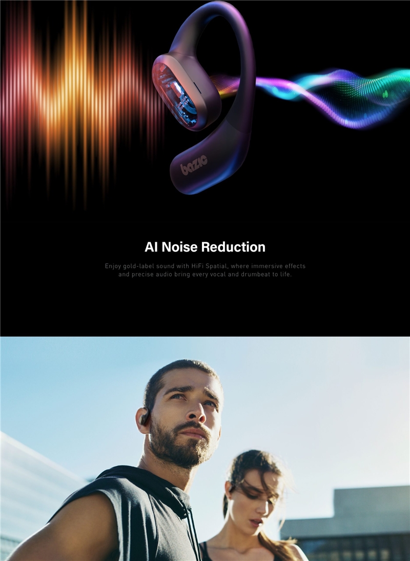 هدفون Bazic GoSound Jolt یک هدفون ورزشی با طراحی باز (Open-Ear) است که از بلوتوث ۵٫۳ برای اتصال پایدار و کیفیت صدای بالا بهره می‌برد. این مدل با هوش مصنوعی کاهش نویز (AI Noise Reduction)، مقاومت در برابر تعریق (IPX4) و باتری ۴۰ ساعته، تجربه‌ای بی‌نظیر برای فعالیت‌های ورزشی و روزمره ارائه می‌دهد.