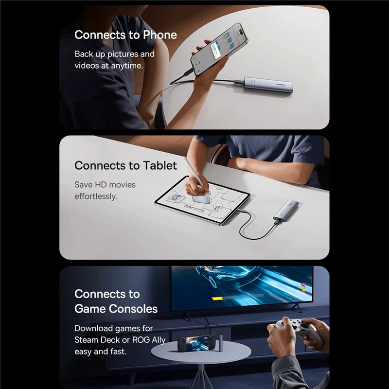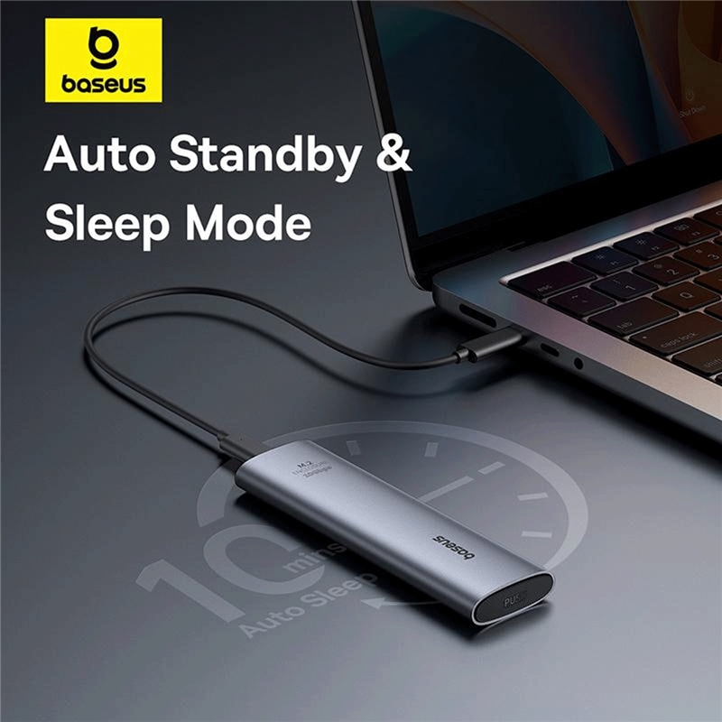 باکس SSD بیسوس مجهز به کلید روشن و خاموش است که به شما امکان می‌دهد به راحتی کنترل دستگاه را در دست بگیرید. با فشار یک دکمه، می‌توانید دستگاه را به سرعت روشن یا خاموش کرده و از مصرف انرژی اضافی جلوگیری کنید. این ویژگی برای کاربرانی که به راحتی و کارآیی اهمیت می‌دهند، گزینه‌ای ایده‌آل است.