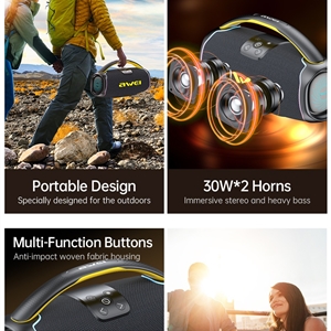 اسپیکر Awei KA16 با بهرهگیری از دو بلندگوی قدرتمند 30 وات، صدایی بلند، شفاف و با بیس قوی ارائه میدهد. این سطح از توان خروجی در میان اسپیکرهای قابلحمل، یک ویژگی برجسته محسوب میشود که تجربه شنیداری شما را به سطح بالاتری میبرد. چه در فضای بسته باشید، چه در فضای باز، اسپیکر بلوتوثی Awei KA16 قادر است بدون افت کیفیت، صدا را بهخوبی پخش کند.