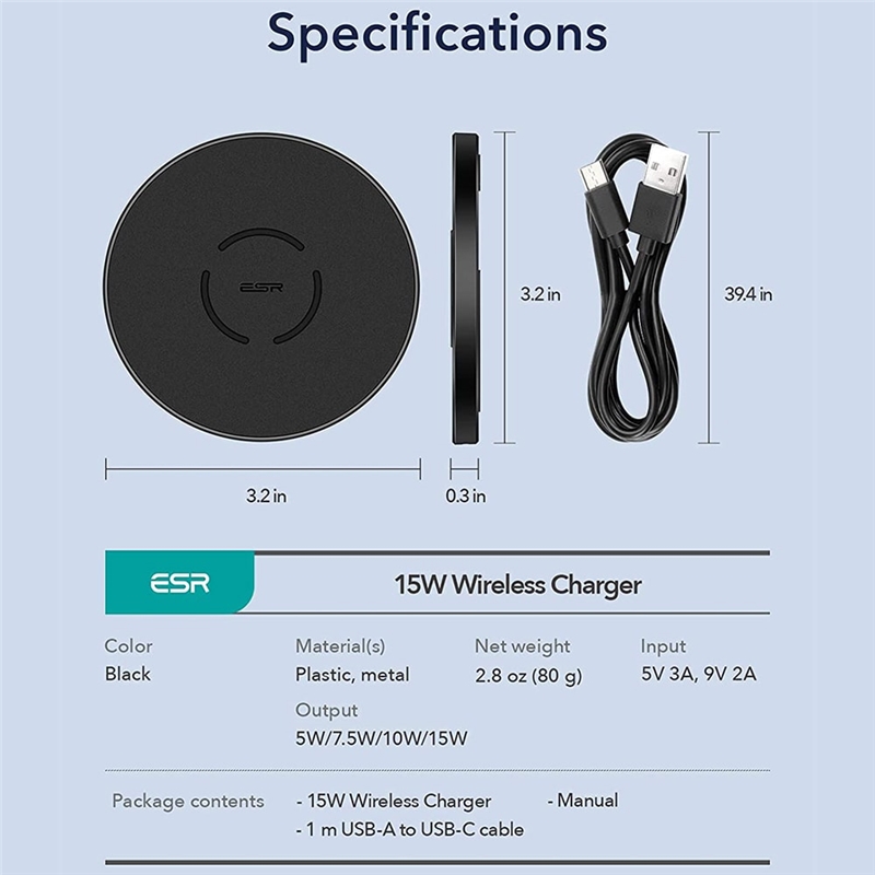 شارژر وایرلس 15 وات سریع ESR مانند سایر شارژرهای بی سیم دیگر طراحی ساده دارد و یکی از آسان ترین راه ها برای شارژ گوشی می باشد. به طوزی که کافیست شارژر را پس از اتصال به برق بر روی میز قرار دهید و گوشی خود را بر روی آن بگذارید.
