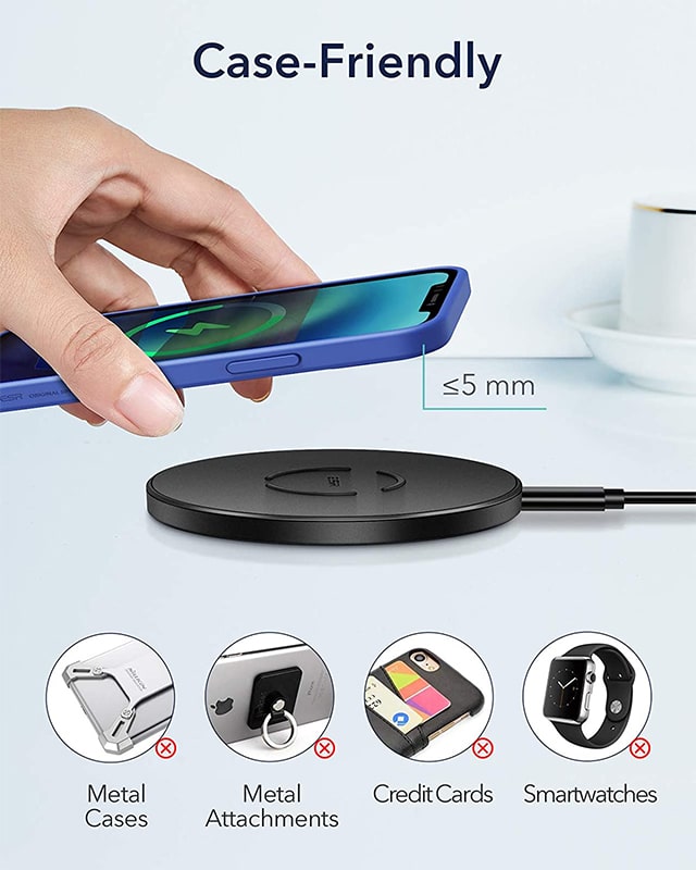 یکی از ویژگی های شارژر سازگاری با قاب ها و کاورهای محافظ می باشد. البته این سازگاری تا ضخامت 5 میلی متر است و قاب هایی با ضخامت بیشتر امکان استفاده از شارژر وایرلس ESR را نمی دهند و نیاز به جداسازی آن ها از گوشی برای عملیات شارژ می باشد.