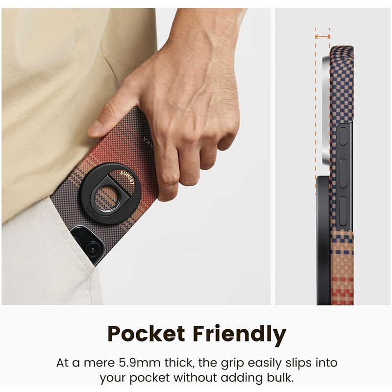 PITAKA MagEZ Grip 3 نسل سوم از حلقههای استند مغناطیسی این برند است که با طراحی فوقالعاده سبک، باریک و در عین حال مقاوم، تجربهای جدید از نگهداشتن و استفاده روزمره از گوشی موبایل را فراهم میکند. این حلقه مگسیف با بدنهای از فیبر آرامید ۶۰۰D، در کنار ظاهر شیک، استحکام مثالزدنی را به کاربر ارائه میدهد.