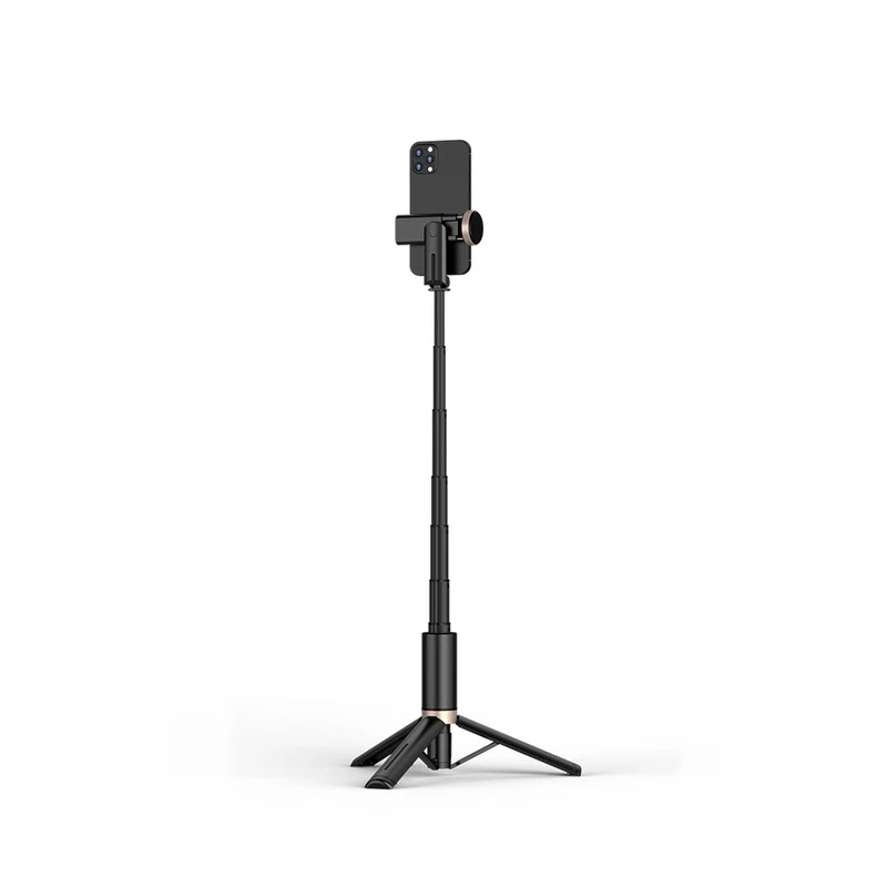 به علاوه، این وسیله کاربردی به راحتی جمع می شود و بدون اشغال فضای زیاد در کیف یا جیب جا می ‌گیرد. یکی دیگر از ویژگی ‌های این سه پایه، کنترل از راه دور از طریق بلوتوث است که به شما امکان می‌ دهد شاتر گوشی را بدون لمس آن فعال کنید. شما می توانید گوشی خود را از راه دور به سه پایه متصل کنید. شاتر گوشی با کمک دکمه ای روی ریموت کنترل از طریق اتصال بلوتوث فعال می شود.
