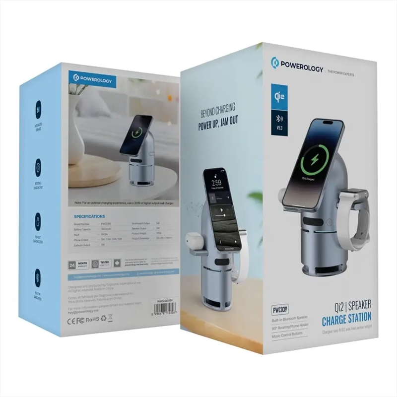 شارژر وایرلس به همراه اسپیکر پاورولوژی مدل PWCUQC039 POWEOLOGY