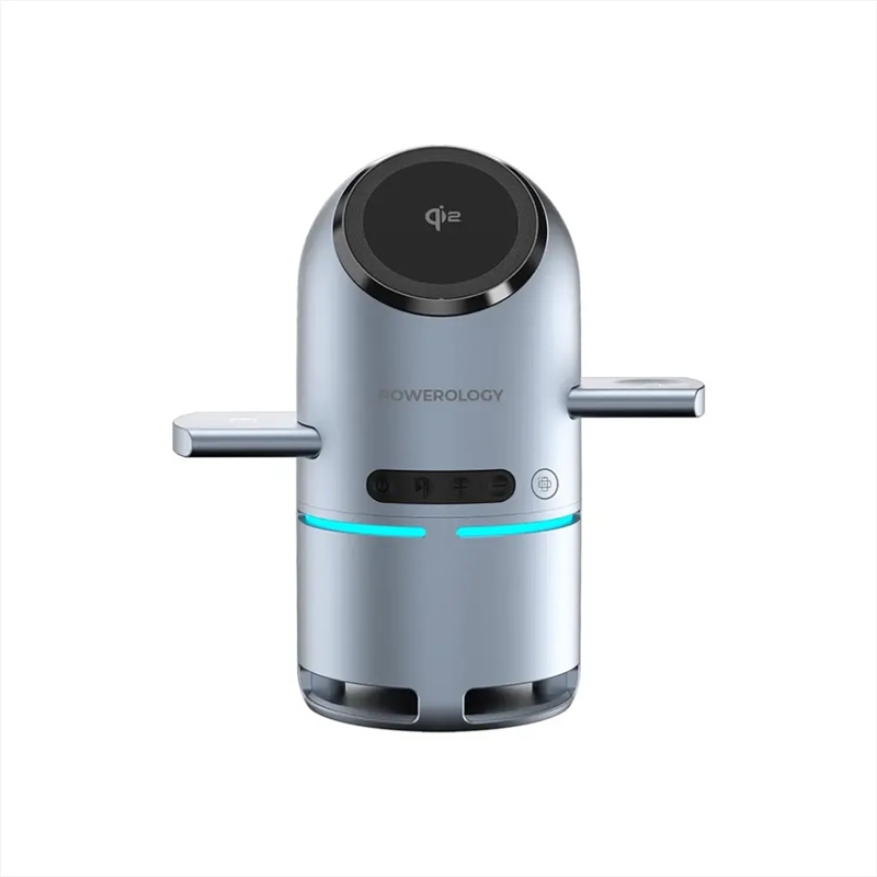 ایستگاه شارژ Powerology Qi2 ترکیبی هوشمند از شارژر بی‌سیم 15W و اسپیکر استریو با کیفیت است. این دستگاه، همراهی ایده‌آل برای میز کار، اتاق خواب یا هر فضایی است که همزمان به شارژ و موسیقی نیاز دارید.