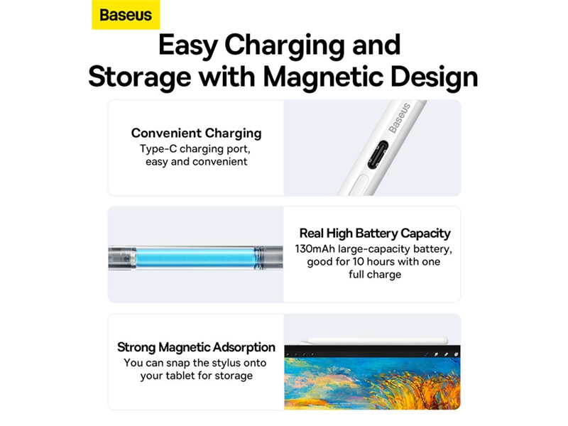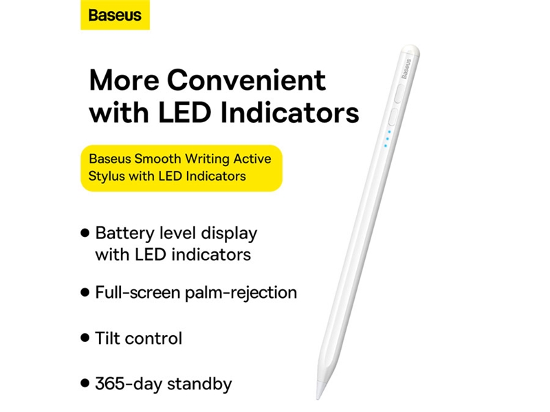 قلم بیسوس Baseus Smooth Writing Stylus with LED Indicators BS-PS004 دارای یک سری Active است.