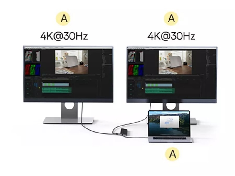 یک پورت Type-C PD و یک پورت Type-C Data: با وجود پورت Type-C PD امکان شارژ با قابلیت PD را در اختیار دارید و حداکثر توان آن 100 وات است که امکان شارژ سریع انواع نوت‌بوک و لپ‌تاپ‌های 100 واتی را برایتان مهیا کرده است. درگاه Type-C Data هم با حداکثر سرعت 5Gbps به انتقال داده‌ها می‌پردازد.