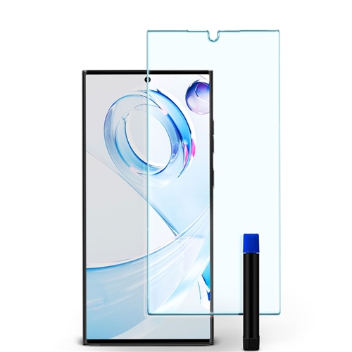 محافظ صفحه نمایش اسپیگن Galaxy S23 Ultra Screen Protector Platinum Tray یک کیت شامل یک گلس شیشه ای با درجه سختی ۹H و یک مایع مخصوص برای پوشش UV این شیشه بصورت ۳D می باشد.