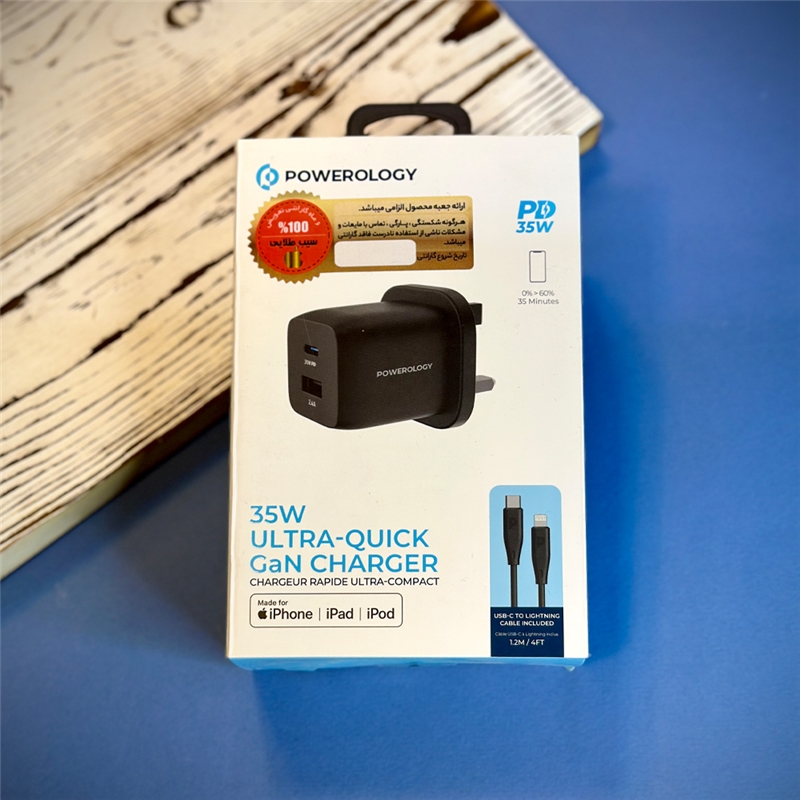 شارژر 35W پاورولوژی Powerology مدل PWCUQC005 فست شارژ به همراه کابل
