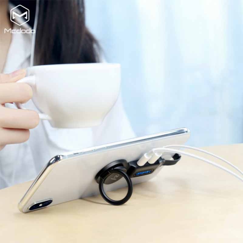 امروزه می توان گفت 90 درصد از گوشی های پرچم دار دارای یک پورت می باشند که هم برای شارژ و هم برای اتصال هندزفری از آن استفاده می شود و این امر برای کم شدن ضخامت گوشی می باشد اما تنها مشکلی که برای این نوع طراحی مطرح می شود این می باشد که شما به طور همزمان نمی توانید هم از هندزفری و هم از شارژر استفاده کنید. کمپانی Mcdodo با ساخت مبدل CA-629 این مشکل را به کلی از بین برده است زیرا این محصول دارای یک کانکتور لایتنینگ جهت اتصال به گوشی و دو پورت لایتنینگ برای اتصال هندزفری و شارژر می باشد. این امر باعث شده تا به راحتی بتوانید هم شارژر و هم هندزفری خود را به طور همزمان به گوشی متصل کنید. همیشه کار کردن با گوشی موبایل در هنگام راه رفتن کار بسیار خطرناک و سختی می باشد زیرا خطر های همچون دزدیده شدن , افتادن و ... گوشی شما را تهدید می کند. این محصول از طریق یک پد چسبنده به پشت گوشی شما متصل می شود و در قسمت بالای آن هولدری انگشتی قرار گرفته که به راحتی می توانید با استفاده از آن گوشی خود را در برابر افتادن حفاظت کنید. علاوه بر این می توانید با باز کردن این هولدر انگشتی گوشی خود را همچون استندی بر روی میز قرار دهید و به تماشای فیلم و یا برنامه مورد علاقه خود بپردازید. بر روی بدنه این محصول برند Mcdodo قرار دارد که در طراحی آن« از چراغ های led استفاده شده و زمانی که شما کابل Mcdodo CA-6290 را به برق متصل می کنید ، چراغ های led روشن شده و هم سلامت شارژ را به شما نشان می دهند و هم باعث زیبایی کابل می شوند.