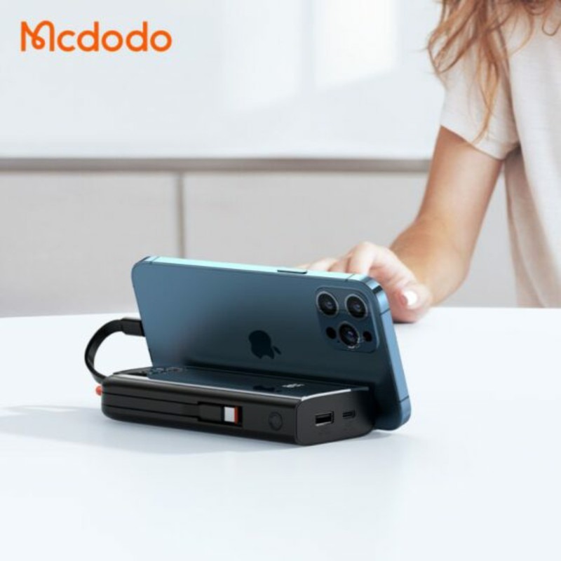 پاوربانک 22.5 وات مک دودو مدل Mcdodo MC-116 یکی از مناسبترین انتخابهای شماست، اگر به دنبال یک پاوربانک خوب هستید که هم دارای کابل شارژ لایتنینگ آیفون باشد و هم کابل Type-C. این پاوربانک قیمت مناسبی دارد، همراه با خود دو کابل مختلف برای گوشیهای اندرویدی و آیفون نیز دارد و علاوه بر اینها، دو پورت جداگانه نیز تعبیه شده است.