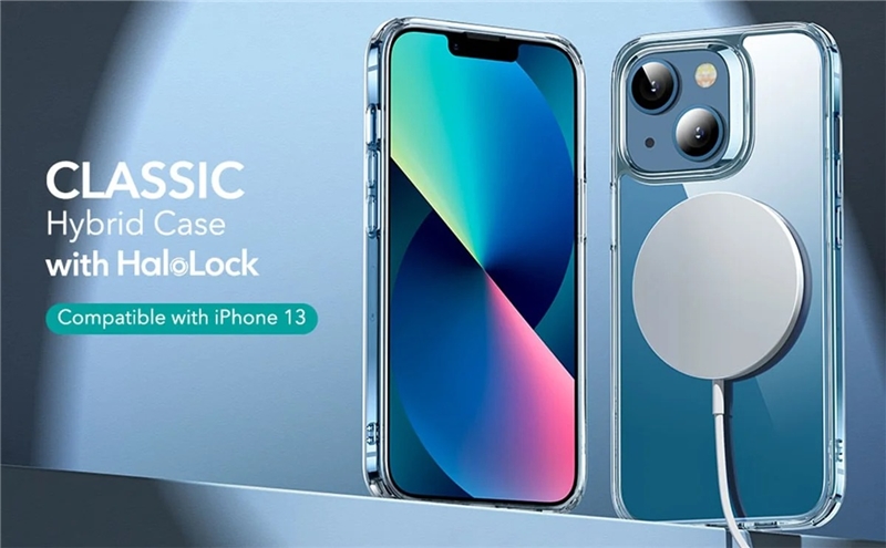 قاب ESR Classic Hybrid HaloLock آیفون 14 قرار بگیرد. این قاب محافظ قابلیت مگسیف دارد و کاملا با شارژر وایرلس مگسیف اپل و سایر شارژر وایرلس ها سازگار می باشد. همجنین این قاب دارای Air-Guard در گوشه های خود برای دفع ضربه و فشار می باشد.