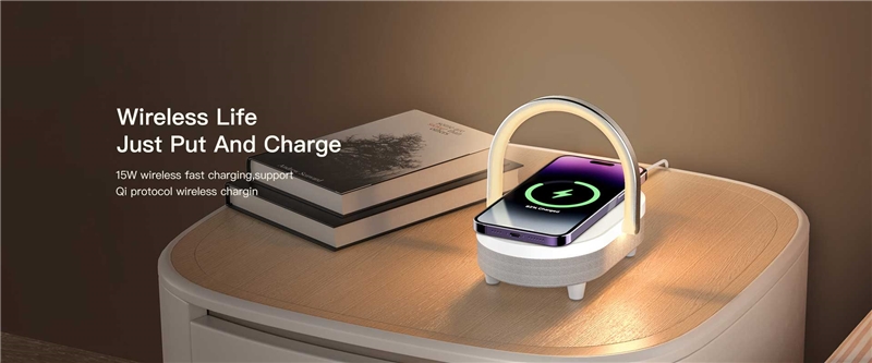 شارژ بی سیم رسی مدل RLS-L16 یک شارژ بی سیم چهار کاره از برند رسی که علاوه بر شارژ بی سیم گوشی موبایل یک اسپیکر در قسمت زیرین ، یک پایه استند در قسمت بالا و یک چراغ خواب نیز دارد که میتواند در کنار تخت خواب یا روی میز کار مورد استفاده قرار بگیرد . این شارژر بی سیم میتوان دستگاه هوشمند شما را با توان 15W شارژ کند . پایه استند دارای نورپردازی بسیار زیبایی ست که به وسیله تاچ روشن و خاموش میشود و میتواند به عنوان پایه استند نیز مورد استفاده قرار بگیرد . اسپیکر این دستگاه در قسمت زیری تعبیه شده است که صدایی به مراتب خوب و با کیفیت دارد . این دستگاه به وسیله کابل تایپ سی به برق متصل میشود.