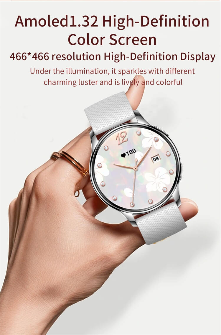 این ساعت هوشمند با صفحهنمایش ۱.۳۲ اینچی AMOLED و رزولوشن ۴۶۶×۴۶۶ پیکسل، تصاویری شفاف و با وضوح بالا را ارائه میدهد. طراحی مینیمال و بند سیلیکونی، این ساعت را به گزینهای زیبا و راحت برای استفاده روزانه تبدیل کرده است.