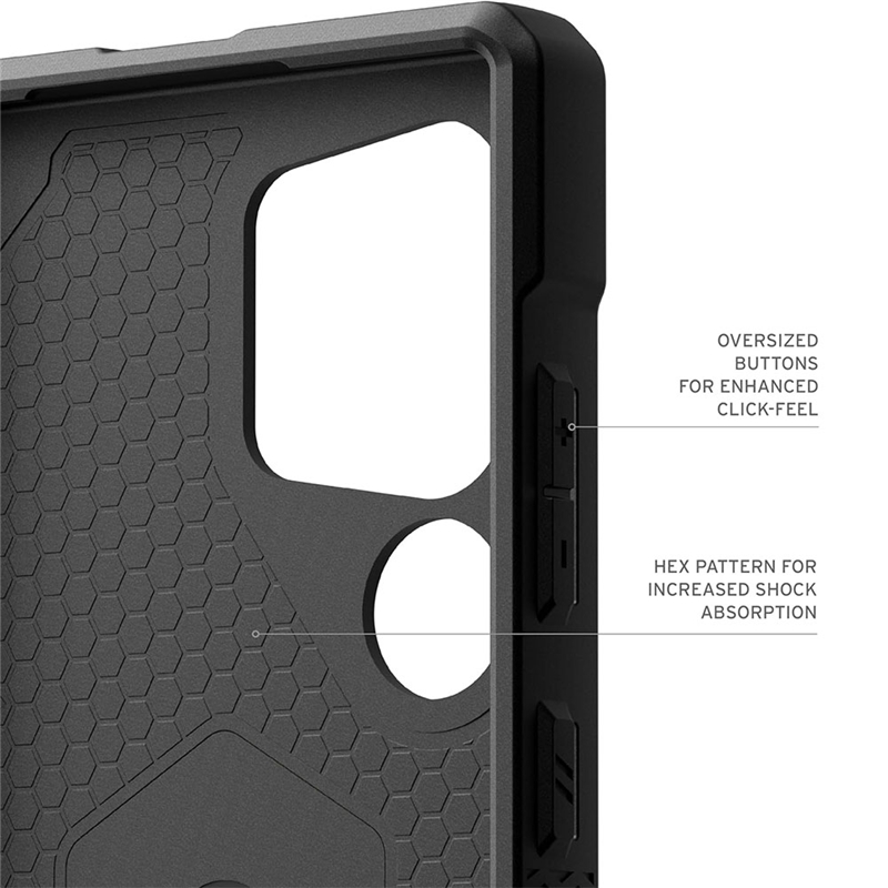 قاب UAG Monarch با دکمههای بزرگ و برجستهای که دارد، به شما این امکان را میدهد که بدون نیاز به فشار زیاد، بهراحتی از دکمههای گوشی خود استفاده کنید. این دکمهها با عملکرد دقیق خود، تجربه کاربری شما را بهبود میبخشند و استفاده از گوشی را راحتتر میکنند.