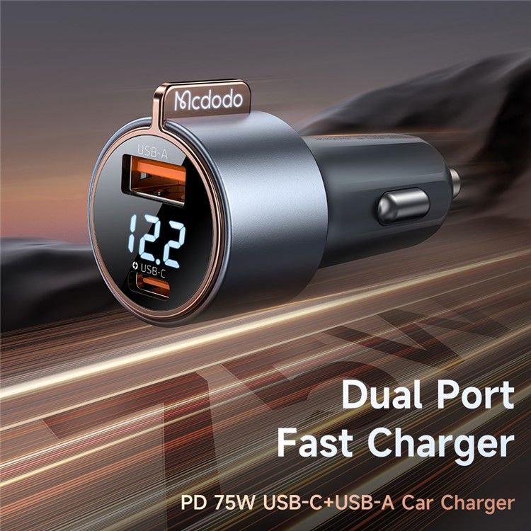 شارژر فندکى 75وات مک دودو مدل CC-3690 ساخته شده از آلیاژ آلومینیم و مواد PC+ABS علاوه بر ظاهر شکیل دارای استحکام مناسبی میباشد.این فندکی دارای دو خروجی USB و تایپ سی با توان خروجی مجموع 75 وات است که سهم تایپ سی 45 وات و USB توان 30 وات را پشتیبانی میکند.این فندکی از پروتکل های شارژ سریع PD3.0/ PPS/ QC4+/ QC3.0/ AFC/ FCP/ SCP/ SFC2.0/ BC1.2/Samsung/Apple 2.4A انواع موبایل و تبلت (بسته به قابلیت دستگاه و کابل مورد استفاده) پشتیبانی می نماید.این شارژر فندکی دارای نمایشگر ولتاژ میباشد که سهولت کار در تاریکی خودرو را نیز فراهم میکند.از شارژر فندکى 75وات مک دودو در انواع خودرو سواری و کامیون و اتوبوس می توان استفاده نمود.ساپورت ولتاژ ورودی DC 12V-24V از ویژگی های این فندکی است.