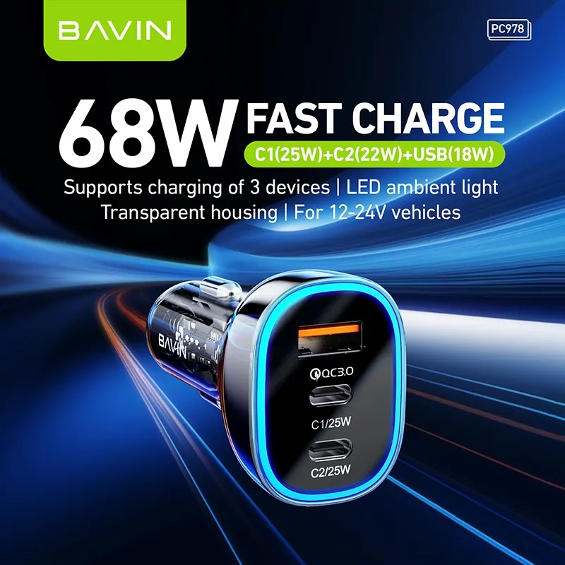 شارژر فندکی Bavin مدل PC978 یک محصول پیشرفته و مدرن است که طراحی آن با هدف ارائه‌ی عملکرد بالا و قابلیت‌های چندگانه به‌طور همزمان صورت گرفته است. شارژر فندکی ماشین باوین PC978 با داشتن سه پورت شارژ سریع و پشتیبانی از فناوری‌های نوین، گزینه‌ای ایده‌آل برای شارژ همزمان دستگاه‌های مختلف در خودرو است.