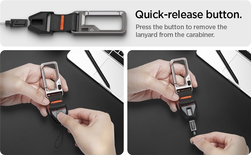 دکمه مناسب برای جدا کردن سریع و آسان لانیارد: این ویژگی به کاربران اجازه می‌دهد تا بند نگهدارنده را به سرعت و بدون هیچ گونه دردسری جدا کنند.