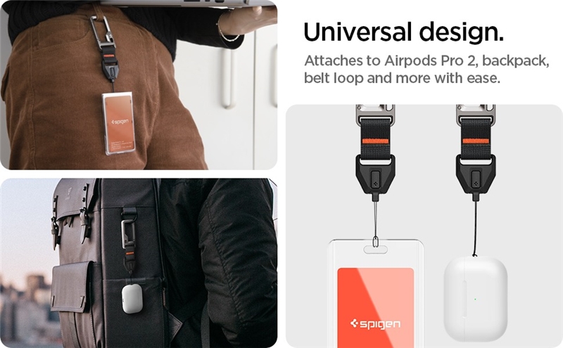 بند نگهدارنده اسپیگن به گونه‌ای طراحی شده که به راحتی به هر کمربند، کوله‌پشتی یا جاکلیدی متصل شود. این ویژگی باعث می‌شود تا کاربران بتوانند AirPods Pro 2 خود را به راحتی و با اطمینان حمل کنند. همچنین این بند نگهدارنده قابلیت اتصال به کیف، جیب و یا لباس‌تان را نیز دارد که این امر باعث افزایش انعطاف‌پذیری در استفاده از آن می‌شود.