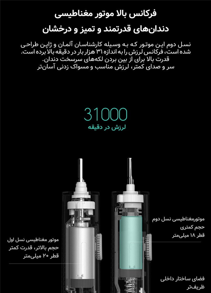 فاقد قطعات فلزی در برس، که از زنگزدگی جلوگیری کرده و بهداشت بیشتری را تضمین میکند.