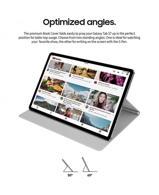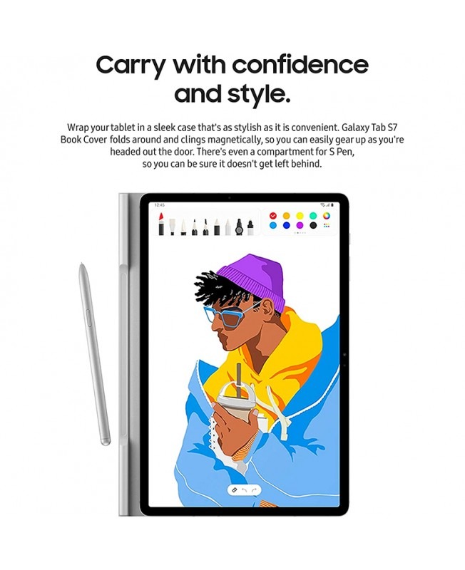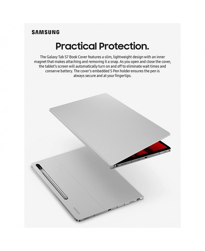 بوک کاور Galaxy Tab S7 تولید شده توسط شرکت سامسونگ می باشد که از کیفیت ساخت بالایی برخوردار و جنس آن از پلاستیک طرح چرم می باشد. این کیف در 3 رنگ آبی ، قهوه ای و خاکستری می باشد که بنابر سلیقه ی خود می توانید رنگ مورد نظر را انتخاب کنید. کیف بوک کاور سامسونگ Galaxy Tab S7 از طراحی دقیقی برخوردار بوده و قسمت لبه های آن خالی می باشد تا برای دسترسی به درگاه های تبلت مشکلی نداشته باشید. سامسونگ Book Cover دارای یک جای قلم S Pen می باشد همچنین لازم به ذکر است که این کیف دارای قابلیت 2 حالت استند مختلف می باشد که بنابر نیاز خود می توانید آن را تنظیم کنید.
