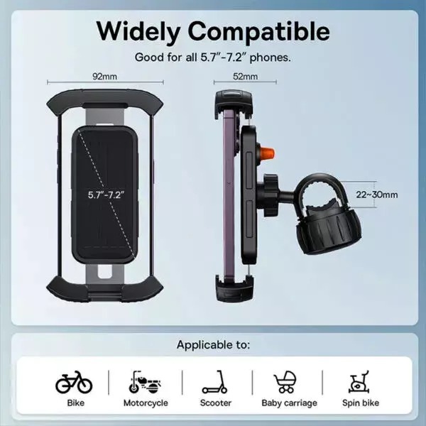 جنس هولدر دوچرخه و موتور بیسوس Baseus BS-CM024 از پلاستیک باکیفیت از نوع ABS و TPU است که از هرگونه آسیب و خط و خش جلوگیری می کند. همچنین این هولدر دارای قابلیت ضد شوک و ضد لرزش است. هولدر گوشی بیسوس BS-CM024 مناسب برای انواع گوشی موبایل با سایزهای 5.7 تا نهایتاً 7.2 اینچی است و از کیفیت ساخت بالایی برخوردار است.