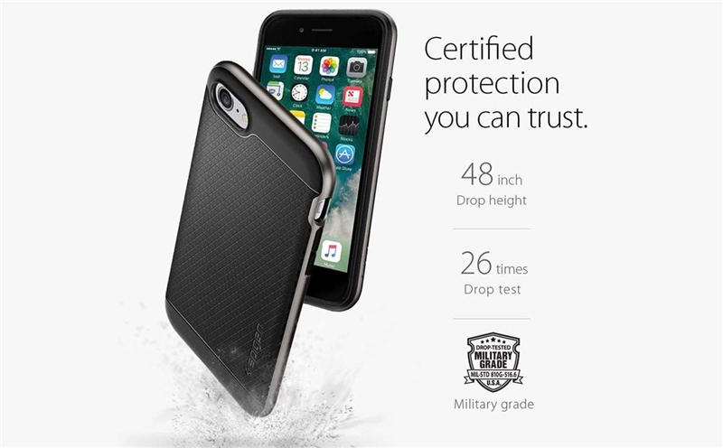 به مانند اکثر قاب های اسپیگن، قاب Neo Hybrid نیز دارای استانداردهای نظامی می باشد؛ بدین ترتیب که این قاب مراحل تست سقوط از ارتفاع های مختلف را با موفقیت گذارنده و می توان برای محافظت از گوشی به آن اعتماد کامل داشت.