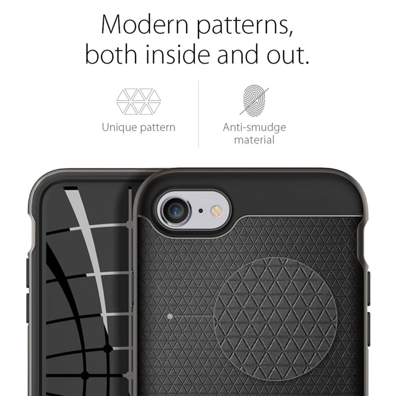 “قاب اسپیگن آیفون Spigen Neo Hybrid Case iPhone همچنین دارای لبه های برجسته ای می باشد که از دوربین گوشی محافظت می کنند. لبه های برجسته ی Neo Hybrid همچنین از آسیب رسیدن به صفحه نمایش گوشی نیز جلوگیری می کنند. قاب محافظ اسپیگن همچنین ضد خط و خش می باشد که با استفاده از آن گوشی شما در برابر خط و خش مقاوم است. طراحی زیبا و چشم نواز، یکی دیگر از ویژگی های این قاب می باشد که سبب رضایت بیشتر خریداران شده است.
