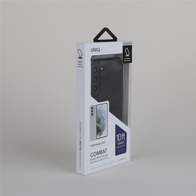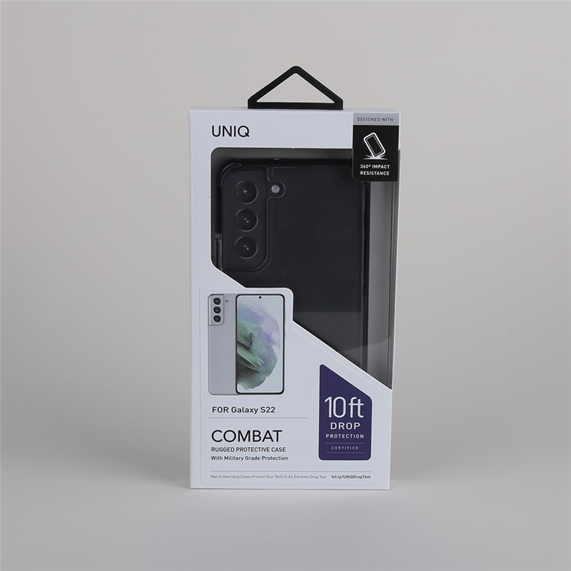 قاب یونیک گلکسی اس 22 | Uniq Combat Case Samsung Galaxy S22 یک قاب محافظ سه لایه می باشد که با پخش ضربه و شوک در هر لایه مانع از انتقال فشار ضربه به گوشی می شود. در ساخت قسمت پشتی قاب از پلی کربنات سخت و مقاوم استفاده شده است که با ساختار در هم فشرده، محافظتی کامل از گوشی دارد.