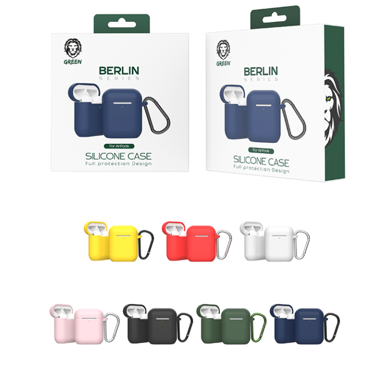 کاور محافظ سیلیکونی گرین مدل APPLE Airpods1/2 ساخته شده از جنس سیلیکون لاستیک ، انعطاف پذیر با پوشش 360 درجه ایرپاد و همینطور درگاه محافظ برای ورودی شارژ و کثیفی را به خود جذب نمی کند. در گوشه چپ کاور امکان درج گیره برای آویز کردن ایرپاد به کیف وجود دارد. محافظ درب بالایی و پایینی بهم متصل بوده و جدا نمی شوند.این کیف کیفیت خیلی خیلی بالایی دارد و اورجینال هست.