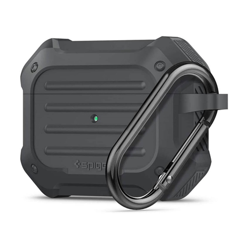 همان طور که اشاره کردیم کیس اسپیگن مدل Tough Armor ایرپادز پرو اسپیگن نه تنها یک محافظ عالی به شمار می رود، بلکه درارای قابلیت شارژ بی سیم می باشد که سبب محبوبیت این محصول شده است. این کیس در رنگ های سبز ارتشی، مشکی و نوک مدادی روانه بازار شده است. جنس Spigen Tough Armor از سیلیکون نرم می باشد که سبب مقاومت بیشتر این محصول شده است. وزن این محصول 119 گرم می باشد که به آسانی قابل حمل و به راحتی در جیب جا می شود. کیس اسپیگن همچنین دارای هنگر فلزی جهت آویزان کردن از کیف، جیب، و می باشد که حمل این گوشی را راحت تر کرده است. این محصول همچنین در برار خط و خش مقاوم و از ضربات احتمالی جلوگیری می کند.