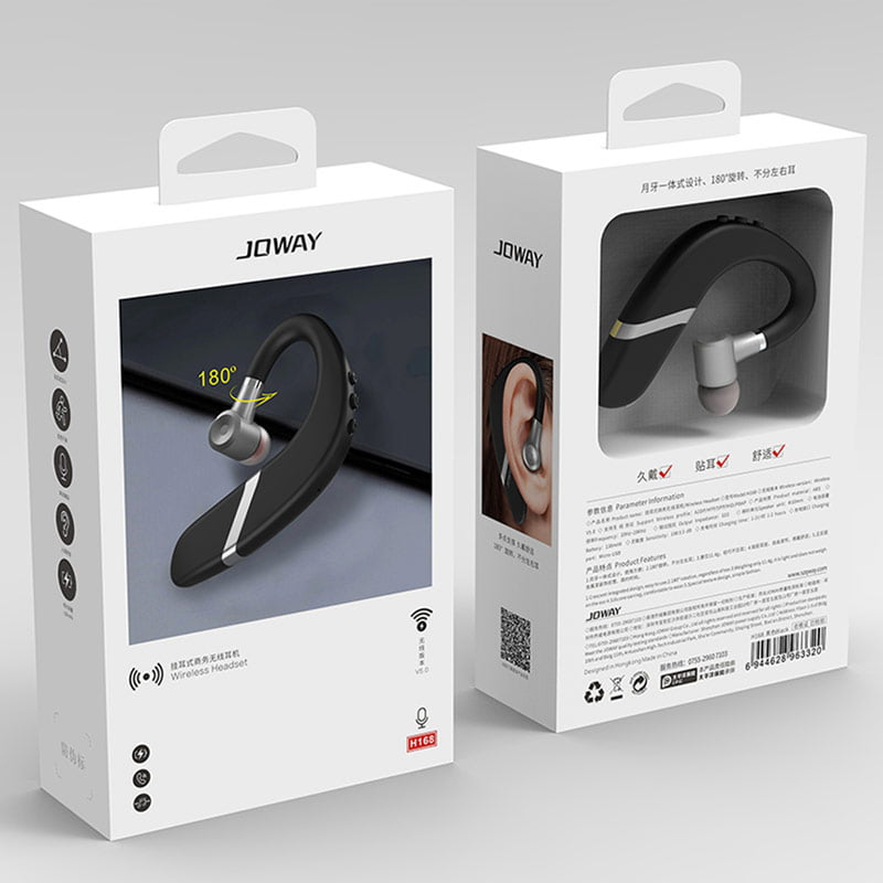 این هدست و هندزفری تک گوشی از برند جووی دارای کیفیتی مناسب و طراحی زیبایی هست این هدست Joway H168 خوش ساخت که کاملا برای مکالمه مناسب بوده و دارای طرح ارگونومی بوده و سری آن داخل گوش فرو میرود و میتوانید موسیقی و مکالمه هارا رساتر و با تفکیک صدای بالاتری دریافت کنید. از ویژگی های هندزفری جووی H168 برای تک گوش طراحی شده و با متریال عالی کیفیت بی نظیری در مکالمه و موزیک دارد که با قابلیت چرخش 180 درجه ای گوشی قابلیت استفاده در هر دو گوش چپ و راست دارد ، همچنین دارای دکمه های فیزیکی روی هندزفری میباشد و این طراحی موجب سهولت در کار هنگام برقراری تماس و قطع تماس و . . . میشود را میتوان بیان نمود.