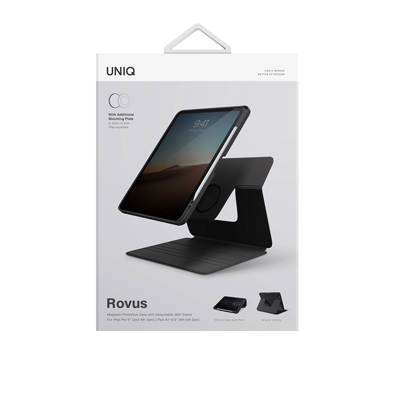 اما این همه نیست – این کیس و استند به طور کامل طراحی شده است تا در برابر هر ضربه یا ضربهی پتانسیلی که ممکن است آیپد شما را آسیب بزند، محافظت جامعی را ارائه دهد. شما خوشحال خواهید شد که بدانید کاملاً سازگار با iPad Pro 11 اینچی (نسل 2 تا 4 یا 2021-2022) و iPad Air 10.9 اینچی (نسل 4 تا 5 یا 2022/2020) است. بیشک،ROVUS MAGNETIC 360 همچنین دارای یک ویژگی دیگر است که به شما اجازه میدهد که اپل پنسل خود را نگهداری و شارژ کنید.