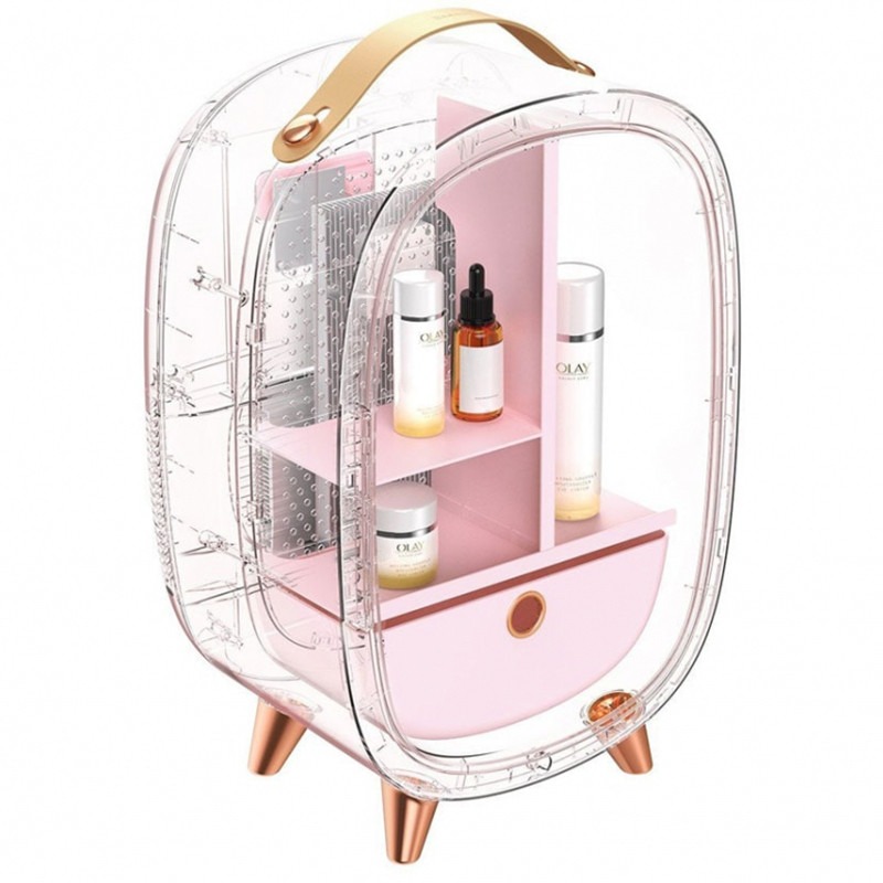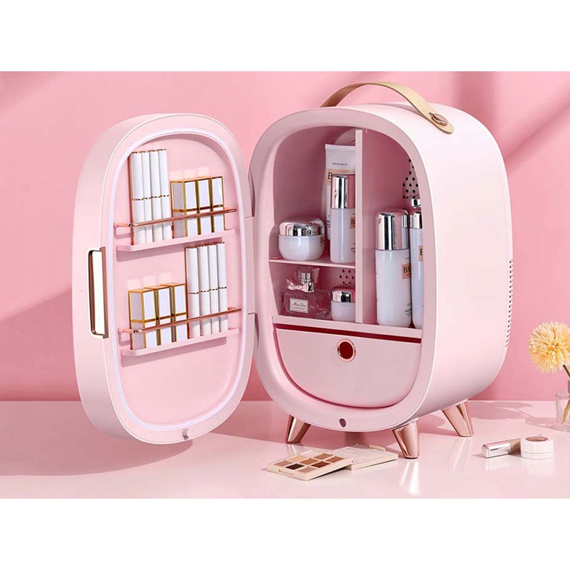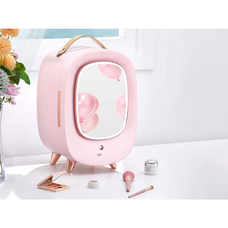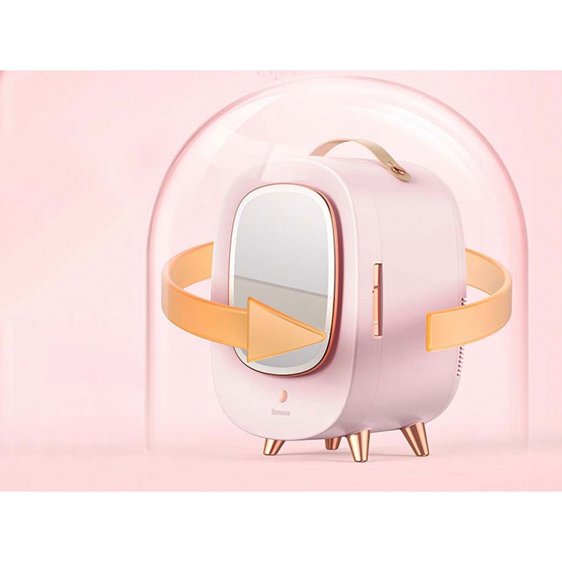 ه جای اینکه لوازم آرایشی را از ترس آب شدن در یخچال نگهداری کنید، با جعبه لوازم آرایش بیسوس Baseus Beauty Fridge CRBXNS-A04 هم خنک نگهشان دارید و هم از میز آرایش دورشان نکنید. همانطور که میدانید دمای بالا و نور زیاد میتوانند تاثیر مستقیم در کیفیت لوازم آرایشی شما بگذارند. پس بهتر است همیشه آنها در مکانی نگهداری کنید که آسیب نبینند و تازه بمانند. یخچال لوازم آرایشی Baseus Beauty Refrigerator میتواند دما را در بازه 10 تا 18 درجه نگهدارد. به علاوه داخلش هم کاملا طبقه بندی و قفسه بندی شده تا چیزی بهم نریزد. سیستم هوشمند به کار رفته در مینی یخچال آرایشی CRBXNS-A04 این امکان را برایتان فراهم کرده که بتوانید دمای داخل دستگاه را روی مقدار ثابت 10 تا 18 درجه سانتی گراد نگه دارید. این یخچال کمک میکند تا عطر لوازم بهداشتی از بین نرود، رژ لب ها ذوب نشوند و ترکیبات فعال سرم ها و ماسک ها خاصیت شان را از دست ندهند. مهم ترین نکته در مورد این یخچال این است که مشکل بهم ریختگی کشوهای آرایشی را برایتان حل میکند. مینی یخچال بیسوس Beauty Fridge CRBXNS به 5 بخش تقسیم شده که هر بخش مناسب نوع خاصی از لوازم بهداشتی است. به علاوه این شلف ها قابل جداسازی هستند تا بتوانید فضای 13 لیتری این محصول را با توجه به نیاز خودتان تنظیم کنید. برای اینکه بتوانید به درک درستی از فضای داخلی این یخچال برسید باید گفت که به طور کلی شما میتوانید 10 رژ لب، 3 تا 4 شیشه عطر، 3 تا 4 عدد کرم، 20 تا 25 عدد ماسک صورت و 2 لوسین یا تونر را در این یخچال جا دهید. دیگر نیاز نیست لوازم آرایشی را با خودتان به سرویس بهداشتی ببرید یا در به در دنبال یک میز آرایش باشید. جعبه آرایشی بیسوس CRBXNS-A04 دارای آینه ای بک لایت دار به ابعاد 11 اینچ است. ابعاد و نور بک لایت قابل تنظیم این جعبه برای آرایش صورت کاملا کافی و مناسب است. سطح آینه با نقره آبکاری شده تا رفلکس تمیز و واضحی برای آرایش داشته باشد. نور این آینه از لامپ LED و بک لایت گرم تشکیل شده که شما میتوانید به راحتی شدتش را تنظیم کنید. فقط کافیست کلید پایین آینه را فشار دهید و میزان روشنایی که میخواهید را ایجاد کنید.
