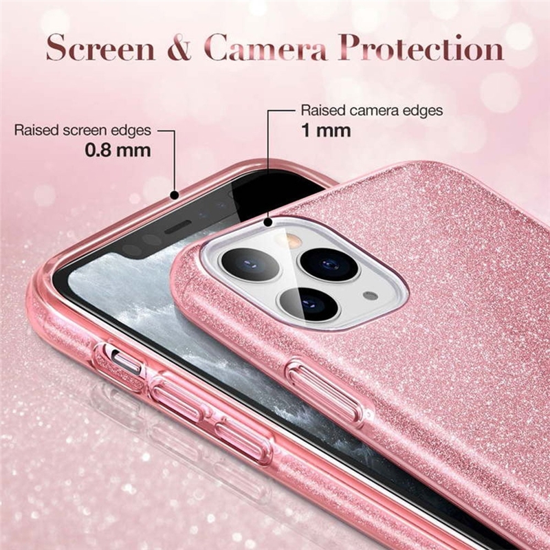 این قاب از یک طراحی سه لایه بهره میبرد که شامل پوشش خارجی نرم TPU، لایه میانی با فیلم گلیتر و پوشش داخلی شفاف از مواد سخت PC میشود. این ترکیب برای ارائه محافظتی همچنین نرم و مستحکم برای آیفون شما طراحی شده است.