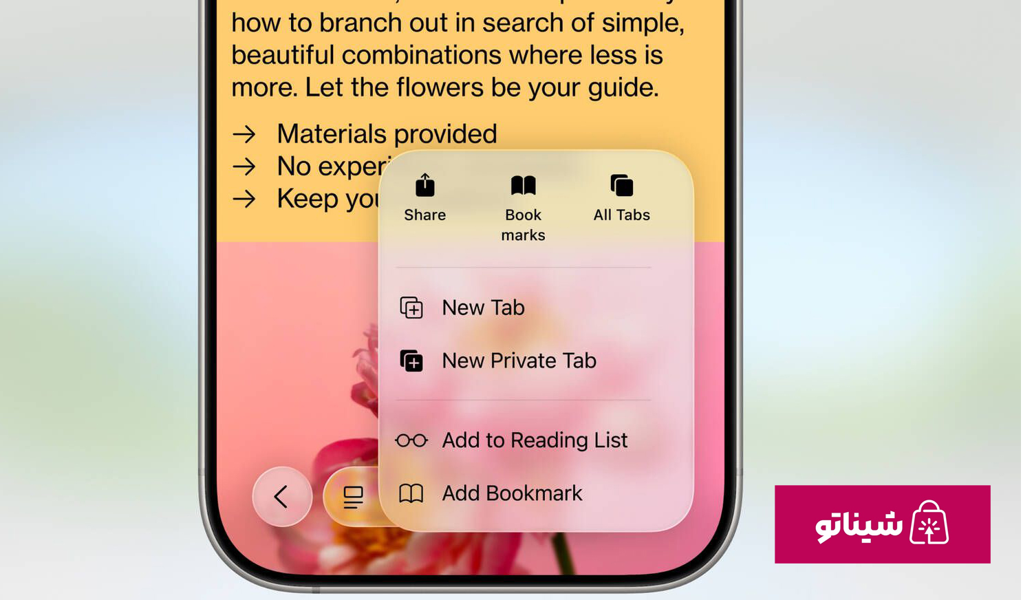 Safari: مرورگر بدون حاشیه (edge‑to‑edge) و مدیریت تبها با گروههای اشتراکی (Shared Tab Groups) ارتقا یافته