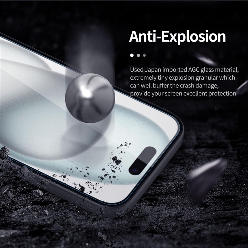قابلیت هایی مانند ضد انفجار بودن باعث شده است که گلس Apple iPhone 15 ضد انفجار و ضد خرد شدن بوده و در برابر این گونه اتفاقات تنها ترک بر میدارد . برخورداری از قابلیتی مانند ضد اثر انگشت و ضد انعکاس نور بودن باعث شده تا گلس نیلکین iPhone 15 H+ Pro Glass ضد لک و اثر انگشت و مقاوم در برابر چربی بوده و مانع از انعکاس نور در محیطهای روشن و فضای باز شده و باعث حفاظت از چشم کاربران حین کار با نمایشگر می شود. به سبب بکارگیری از مواد اولیه مرغوب در ساختار این محافظ ، تا جنس آن نرم بوده و کاربر در زمان استفاده از آن مشکلی نداشته و انگشتانش به راحتی روی سطح محافظ شیشهای بلغزد و به همه طرف حرکت کند. در آخر اینکه این محافظ ساختاری چند لایه ای برای عملکرد بهتر داراست.