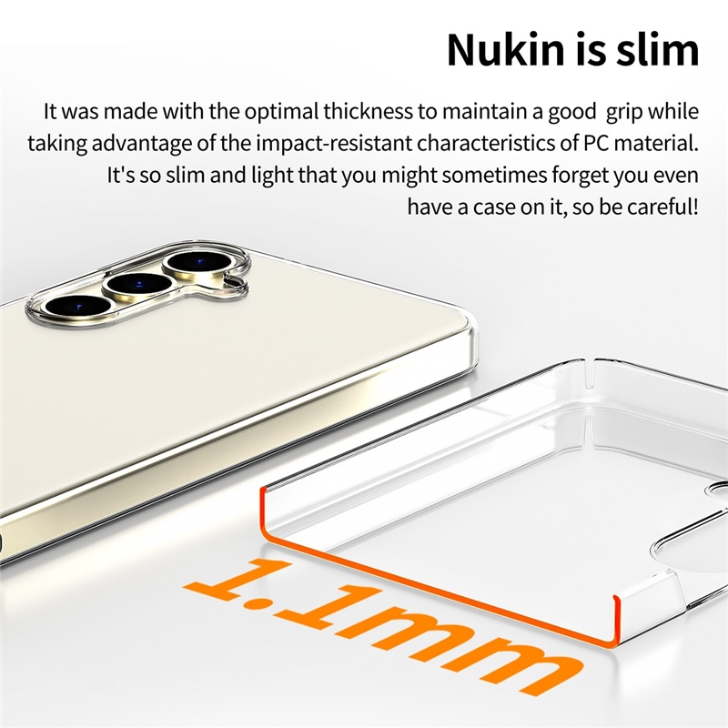 قاب سامسونگ S24 Araree Nukin Clear از PC ساخته شده است که قسمت پشتی آن شفاف است. برای محافظت از صفحه نمایش و دوربین لبه ‌های قاب و دور اطراف دوربین نیز دارای پوششی از جنس PC مجهز شده اند.