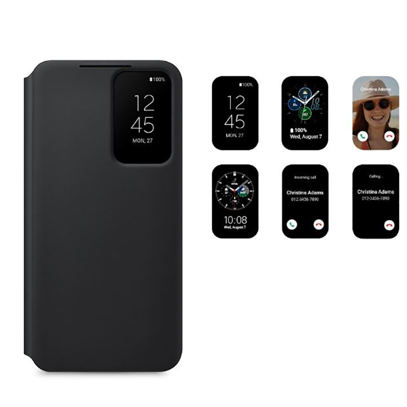 کیف اصلی و هوشمند سامسونگ گلکسی S24 Plus که اسم آن smart view wallet cover نام دارد ، هم رنگ گوشی های Galaxy S24 تولید شده است و هنگامی که روی گوشی قرار می گیرد ، هنگامی که درب کیف بسته است ، اعلان ها یا همان نوتیفیکیشن ها را نشان می دهد. همچنین وقتی با شما تماس گرفته شود ، بدون باز کردن درب آن می توانید ببینید چه کسی  با شما تماس گرفته است و از روی کاور قابلیت رد تماس یا پاسخ به آن را خواهید داشت. جنس کیف هوشمند کیف کلاسوری هوشمند Clear View Cover سامسونگ گلکسی S24 Plus از پلاستیک سخت و شکستنی می باشد و نسبت به کیف های ژله ای ضعیف تر می باشد.
