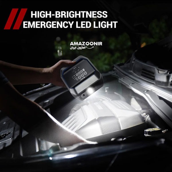 KF03 میتواند باتری خودروهای بنزینی و دیزلی را حتی در دماهای پایین به سرعت روشن کند. این دستگاه با حداکثر فشار ۱۶۰ PSI و جریان هوا ۲۵-۲۸ لیتر در دقیقه، میتواند لاستیکهای خودرو، دوچرخه، موتورسیکلت و توپهای ورزشی را به سرعت باد کند. مجهز به یک صفحه نمایش دیجیتال است که مقادیر فشار و فشار واقعی را به طور دقیق نمایش میدهد. همچنین مجهز به چراغ LED اضطراری است که در تاریکی و شرایط ناامن، دید شما را افزایش میدهد.