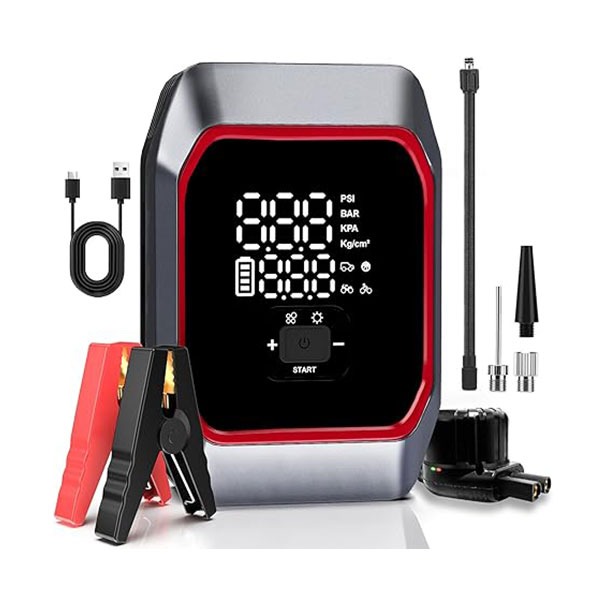 جامپ استارتر خودرو و کمپرسور هوای 2 در 1 دارای یک صفحه دیجیتال بزرگ 5 اینچی هستند که خواندن آن را همیشه آسان می کند، حتی زمانی که در معرض نور شدید خورشید در فضای باز قرار می گیرید. علاوه بر این، جامپ استارتر خودرو از کنترل صفحه لمسی پشتیبانی میکند که کنترل آن آسانتر است و عمر طولانیتری نسبت به سایر استارتهای دکمهدار دارد.